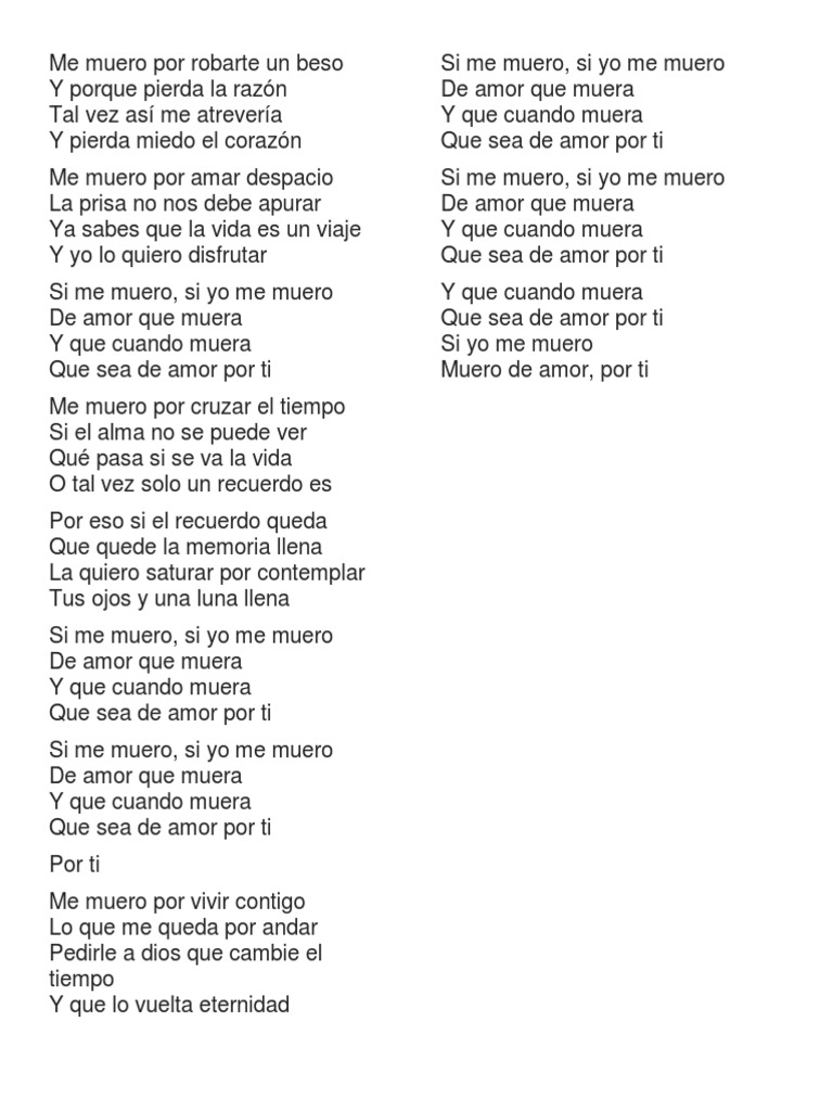 Me Muero Letras De Canciones Romanticas Canciones Romanticas Letras De Canciones De Amor
